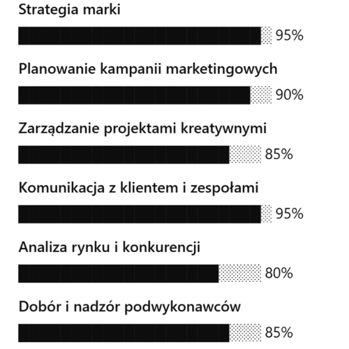 Od analizy marki i wyznaczenia kierunku, przez wybór odpowiednich narzędzi i zespołów, aż po nadzór nad skuteczną realizacją działań – wspieram marki w rozwoju, podejmując decyzje, które mają znaczenie.